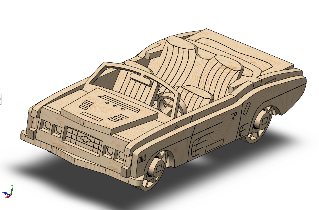 Convertible Car敞篷车拼装模型激光雕刻3D图纸 Solidworks 附cdr